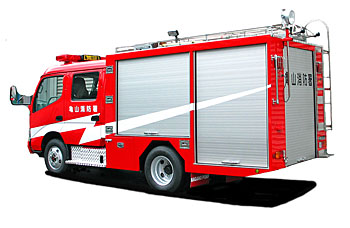 ▼収納スペースを考慮して専用設計されています。▼吸水管はサイドプル式ではなく、通常の巻き吸管を使いながら最大限に資機材スペースを設ける為に工夫しています。▼車体構造は小型水槽を搭載するスペースを利用し、引き出し式の大型、資機材スペースを設けています。▼右側の引出し、スペースには消火用のガンタイプノズル、無反動管鎗、泡消火用の中発砲ノズル、分岐管などを搭載しています。▼また、左側の引出し式大型資機材スペースには発電機、コードリール、照明装置、三脚を搭載しています。▼省力機器としてNGN-02Kを搭載しており、急坂の多い地域のホースの延長を容易にしています。